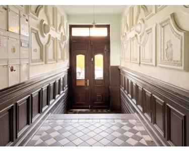 Diese bezugsfreie Eigentumswohnung befindet sich im Dachgeschoss eines gepflegten Mehrfamilienhauses, das um 1910 erbaut und 1994 umfassend saniert wurde. Das Gebäude präsentiert sich in einem sehr guten Erhaltungszustand und überzeugt durch seinen klassischen Altbaucharme in Kombination mit modernem Wohnkomfort.