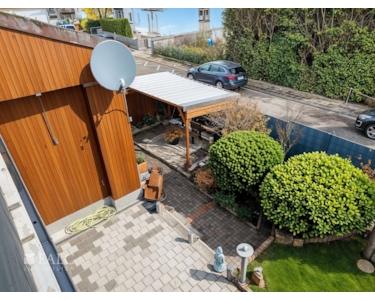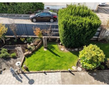 Der Außenbereich des Hauses besticht durch einen gepflegten, kompakten Garten.