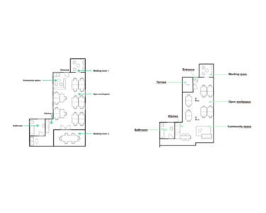 Das Büro ist ausgestattet mit 24 Arbeitsplätzen und 3 Meeting Räumen. Die Fläche ist komplett möbliert, sodass man sofort einziehen und arbeiten kann. Das Büro erstreckt sich über 2 Etagen.