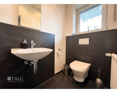 Die Fenster wurden 2001 erneuert und sorgen mit ihrer guten Isolierung für ein angenehmes Raumklima und hohe Energieeffizienz. Bodenbeläge sowie sanitäre Anlagen wurden 2011 hochwertig modernisiert und präsentieren sich in einem zeitgemäßen, stilvollen Design. Die Bäder überzeugen durch moderne Armaturen, anthrazitfarbene Fliesen und eine funktionale, familienfreundliche Raumaufteilung.