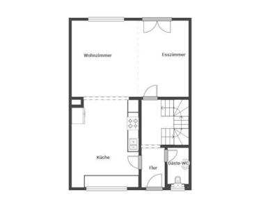 Im Erdgeschoss befinden sich linker Hand die moderne Küche und rechts das Gäste-WC. Der Flur führt geradewegs in den großzügigen, lichtdurchfluteten Wohn- und Essbereich. Die offene Verbindung zur Küche sorgt für ein kommunikatives Wohngefühl und macht diesen Bereich zum Mittelpunkt des täglichen Familienlebens. Große Fensterflächen eröffnen den Blick in den gepflegten Garten. Von hier aus gelangt man auf die überdachte Terrasse mit integrierter Beschattung – ein idealer Ort für gesellige Grillabende, entspannte Nachmittage oder spielende Kinder bei jedem Wetter.