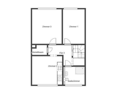 Über eine zentrale Treppe erreicht man die erste Etage, die perfekt für Familien geeignet ist. Hier stehen drei gut geschnittene Schlafzimmer zur Verfügung – flexibel nutzbar als Kinderzimmer, Gästezimmer oder Homeoffice. Besonders praktisch ist, dass eines der Schlafzimmer über Küchenanschlüsse verfügt, was zusätzliche Nutzungsmöglichkeiten bietet, etwa als Jugendzimmer mit eigener kleiner Küchenzeile oder als separates Wohnstudio. Ein Badezimmer mit Tageslicht sowie ein nützlicher Abstellraum ergänzen diese Etage, sodass ausreichend Stauraum und Komfort vorhanden sind.