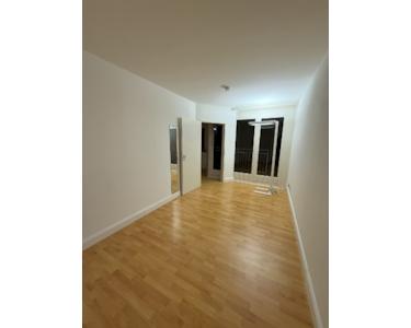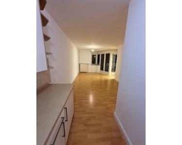 In dem Flur, der Sie in dieser Wohnung empfängt, befindet sich ein großer, praktischer Einbauschrank, in dem Kleider oder eine Garderobe untergebracht werden können.