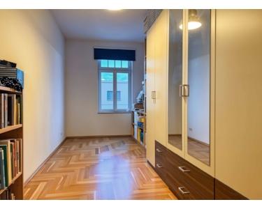 Hinter der Eingangstür erstreckt sich ein langer, charakteristischer Flur, in welchem eine große Garderobe und Kleiderschränke ihren Platz finden. Von hier aus erreichen Sie alle Räumlichkeiten der Wohnung.