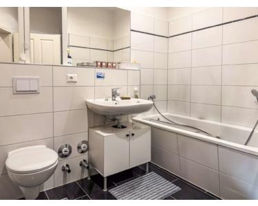 Das Hauptbadezimmer verfügt sowohl über die Annehmlichkeiten einer Badewanne als auch über die einer Dusche. Außerdem existiert eine separate Gäste-Toilette.