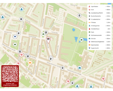 - REWE Supermarkt: ca. 800 m