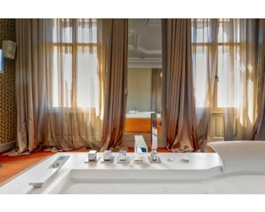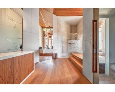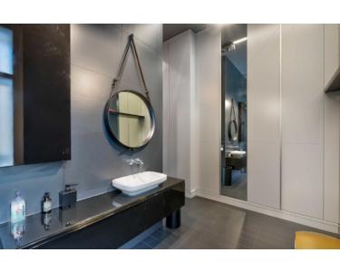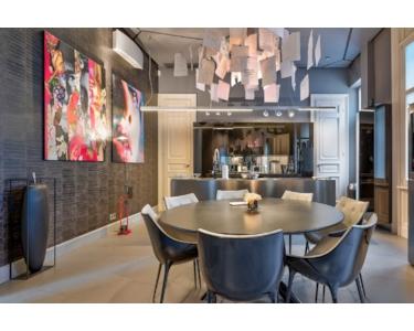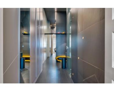 A lakás nagy konyha-étkezővel, hatalmas reprezentatív nappalival, két óriási hálószoba lakrésszel, saját fürdőkkel és gardróbbal rendelkezik. A terek funkciót tekintve jól elkülönülnek egymástól, mégis egyben jelennek meg. Van tárgyaló és dolgozó rész, a nappaliban üvegfallal elkülönített térben álló jakuzzi, a panorámás fürdőszobában gőzkabin-szauna lett beépítve, meditáló-pihenő résszel, a legszebb kilátással a város forgatagára.