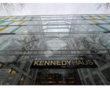 Das Kennedy Haus wurde 2004 fertig gestellt und erhielt im Jahr 2005 für seine beeindruckende Bauweise den Deutschen Architekturpreis. Das Objekt mit ca. 12.000 m² Bürofläche besteht aus vier markanten Häusern, die sich im Wechsel mit den Innenhöfen um einen zentralen Mitteltrakt reihen, der zugleich alle Einheiten verbindet. Dabei ist die Gesamtstruktur höchst flexibel: Jedes der 6 Vollgeschosse und 2 Staffelgeschosse kann in sich separiert oder als ganzes Haus zusammengefasst werden. Die straßenseitigen Höfe und die Fassade des Gebäudes werden von einer durchgehenden, Lärm abschirmenden Glaswand eingefasst. Die zahlreichen Glasfronten sorgen nicht nur für helle, Licht durchflutete Büroräume und somit ein angenehmes Arbeitsklima, sondern sie lassen auch die großzügige Eingangshalle und den repräsentativen Empfangsbereich im Tageslicht erstrahlen.