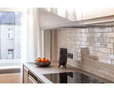 Diese außergewöhnlich hochwertig sanierte Designer-Altbauwohnung befindet sich im 4. Obergeschoss des Seitenflügels eines gepflegten Gründerzeithauses in der Winsstraße im Herzen des Prenzlauer Bergs. Die rund 45 m² große Wohnung ist sehr hochwertig ausgebaut und wurde von einer Innenarchitektin mit einem maßgeschneiderten Wohn- und Interior-Konzept ausgestattet. Es handelt sich um einen Erstbezug inklusive moderner Elektrik, neuem Fischgrät-Echtholzparkett, hochwertiger Sanitärinstallation, neuen Heizkörpern, exklusiven Einbauten sowie einer vollständig neuen, modernen Einbauküche. Der großzügige Wohnbereich überzeugt durch seine offene Raumwirkung, eine harmonische Farb- und Materialwelt sowie aufeinander abgestimmte Designer-Möbel, darunter ein hochwertiges Premium-Sofa, ein skulpturaler Esstisch, elegante Stühle, ein stilvoller Teppich und ausgewählte Leuchten namhafter Hersteller. Der Schlafbereich wurde durch ein dezentes, deckenhohes Vorhangsystem elegant abgetrennt und bietet mit einem neuen Polsterbett mit Bettkasten, passenden Nachttischen sowie hochwertigen Wand- und Deckenleuchten ein ruhiges, warmes und sorgfältig gestaltetes Ambiente. Die neue, unbenutzte Küche wurde maßgefertigt und fügt sich mit modernen Fronten, hochwertigen Elektrogeräten, integrierter Beleuchtung und maximalem Stauraum perfekt in den Wohnbereich ein. Das modernisierte Bad besticht durch klare Linien, ein zeitloses Farbkonzept und hochwertige Armaturen. Ein besonderes Highlight ist der separate Ankleide- bzw. Homeoffice-Bereich, ausgestattet mit raumhohen maßgefertigten Einbauschränken und einer integrierten Arbeitsplatte – eine in dieser Wohnungsgröße außergewöhnliche Kombination aus Stauraum und Funktionalität. Die Wohnung wird als komplett ausgestattetes Premium-Paket verkauft – inklusive sämtlicher Möbel, Leuchten, Vorhänge, Teppiche, Deko-Elemente sowie aller maßgefertigten Einbauten und der neuen Einbauküche. Hier wurde jedes Detail professionell geplant und umgesetzt, sodass ein sofortiger Einzug ohne weitere Investitionen möglich ist.