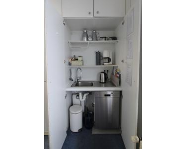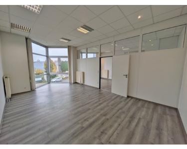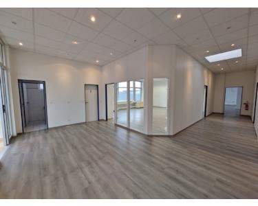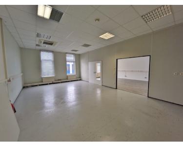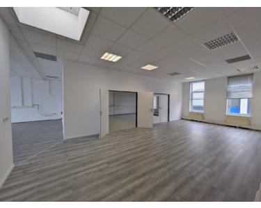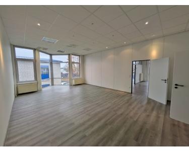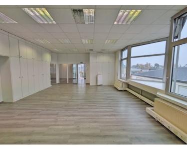 Die Büroräume zur Vorderseite des Gebäudes sind über einen zentralen Flur zugänglich, wobei der vierte Raum über den Besprechungsraum erreicht wird. Alle Büroräume sind mit einheitlichem Laminatboden ausgestattet. Zwei der Räume bieten zusätzlich helle Einbauschränke. Auf dieser Etage stehen ebenfalls separate Damen- und Herren-WCs zur Verfügung.