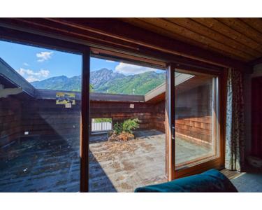 Die Dachgeschosswohnung ist derzeit unbewohnt. Auch hier finden Sie 7 Gästezimmer mit Bad, einen Aufenthaltsraum und eine Dachterrasse, die ebenfalls einen wunderschönen Bergblick bietet. Aus Brandschutzgründen wird das Dachgeschoss derzeit nicht genutzt.