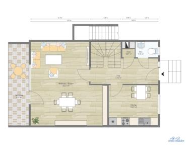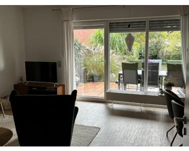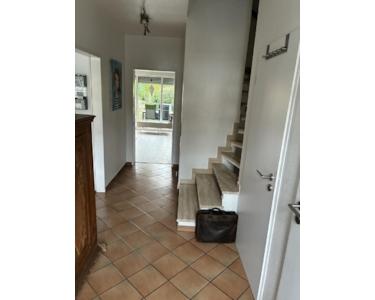 Erdgeschoss: heller Flur mit Zugang zur neuwertigen, modernen Küche, zum Gäste-WC und dem Einbau-Schrank. Von dort geht es in das großzügige und helle Wohnzimmer mit direkten Zugang zur Süd-Terrasse und Garten.