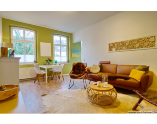 This attractive and very tastefully furnished apartment in an older building enjoys a central location in Ratingen. It has been tastefully appointed with new furniture. Open-plan layout, meaning there are no doors between the entrance hall and living room or living room and bedroom, with the latter being separated off by a curtain. This arrangement results in more natural light and space. Non-smoking property. The apartment is located in a rear building, enjoying a quiet location facing the inner courtyard.