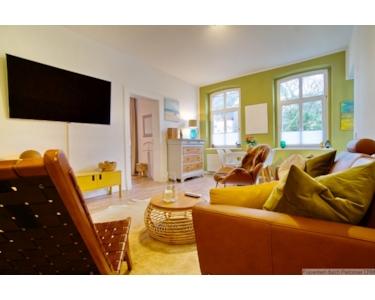 The parking space in the rear courtyard is for your sole use, solving the problem of finding a parking space in such a central location. Also provided are two TVs, Vodafone GigaTV, HomeNet and wi-fi internet access. The bedroom is furnished with an extremely spacious wardrobe and a double bed (1.60m x 2.00m) and a second TV set with the Waipu streaming service. Access to the south-east-facing balcony from the kitchen, which is equipped with a dishwasher, ceramic hob, oven, microwave, fully automatic coffee machine (De Longhi), toaster and kettle. A good selection of tableware, pots and pans, baking utensils, glasses and towels is also provided. A basic selection of bedlinen, a hairdryer, iron and ironing board and last but not least a washing machine on the ground floor all ensure you have a perfect stay.