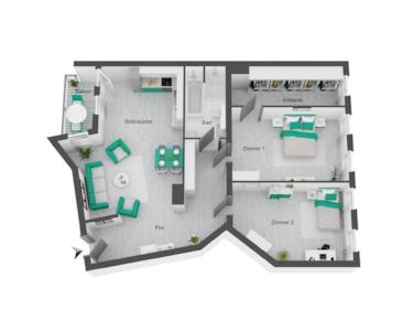 Die Wohnung überzeugt mit einem funktionalen Grundriss, der sowohl für Familien als auch für Wohngemeinschaften interessant ist. Zwei große Schlafzimmer, ein flexibel nutzbares Durchgangszimmer sowie ein weitläufiges Wohnzimmer mit offener Küche garantieren eine hohe Nachfrage am Mietmarkt. Der sonnige Westbalkon, das modern ausgestattete Bad mit Wanne und Dusche sowie der gepflegte Gemeinschaftsgarten im Innenhof erhöhen die Attraktivität zusätzlich.