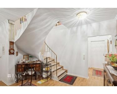 Bereits das Entrée wirkt einladend und offen. Von hier führt eine elegante Steintreppe in den großzügigen Wohnbereich der oberen Ebene. Allein dieser Aufgang verleiht der Wohnung einen fast schon charaktervollen, wohnlichen “Haus-im-Haus”-Charme.