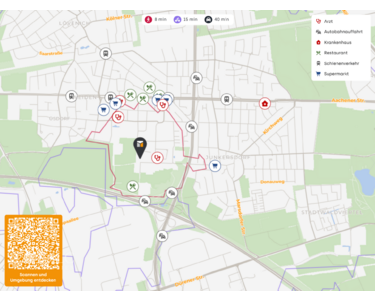 Die Umgebung bietet zudem eine gute Infrastruktur für Familien. Schulen und Kindergärten sind gut erreichbar, und der hohe Versorgungsindex von 83 % unterstreicht die Qualität der Nahversorgung.