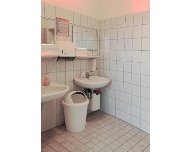 ist vorhanden. Die WC-Anlagen, getrennt für Damen und Herren, befinden sich im Aussenbereich dieser Büroeinheit. Der großzügige Gang- und Treppenbereich sowie die Toiletten werden durch ein Reinigungsunternehmen ständig in Schuss gehalten. Ein Personenaufzug ist ebenfalls vorhanden. Genügend Parkplätze befinden sich direkt am Gebäude