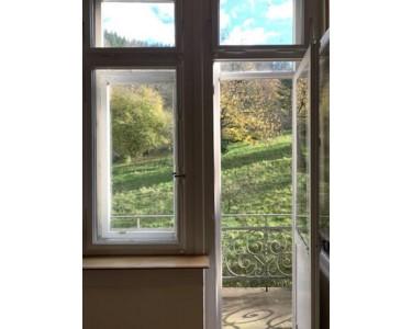 Edles Fischgrätenparkett, hohe bunte Glasfenster, weiße Türen mit kunstvollen Verzierungen und Ornamenten, dezente Stuckelemente an den Decken, großflächige Fenster mit originalen Griffen und Rollläden, Garage, toller Garten.