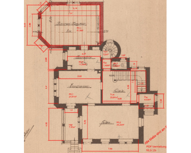 Das Dachgeschoss beherbergt eine renovierte eigenständige Wohnung mit vier Zimmern, einer Wohnküche, einem Badezimmer und einer separaten Toilette mit ca. 125m2 Wohnfläche, welche separat vermietet wird. Eine Wendeltreppe im Türmchen bietet einen separaten Zugang zur Dachgeschosswohnung.