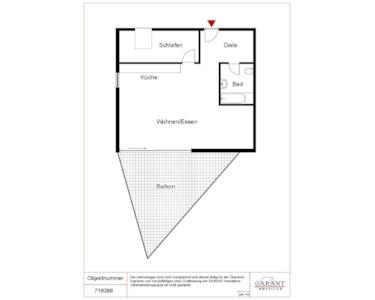 Das Haus hat überschaubare 6 Parteien. Der Flurbereich führt in das Badezimmer mit Badewanne, WC und Waschbecken so wie dem Waschmaschinenanschluss. Rechts vom Badezimmer befindet sich das Schlafzimmer. Das großzügige Wohnzimmer mit Essbereich ist hell und freundlich. Die Einbauküche ist zweckmäßig.