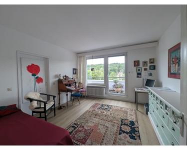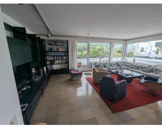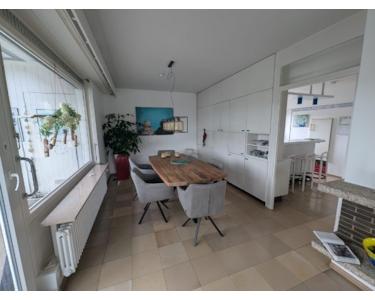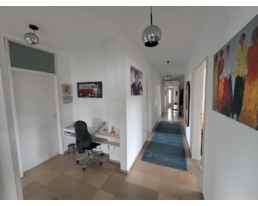 Helle 4-ZW mit gr. Fenstern, 121 m², Küche mit Durchreiche / Tresen und angrenzendem Essbereich. An SW Seite umlaufender Balkon. Vom Wintergarten aus kann ein Fahrstuhl genutzt werden. Großes Bad mit DU und BW, separates Gäste-WC. Die Whg. ist nahezu barrierefrei.