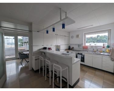 Die Penthouse Wohnung befindet sich auf einem Firmengebäude am Rande des Gewerbegebiets Brötzinger Tal mit Blick auf den Schwarzwald und den Fluss Enz.