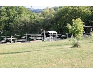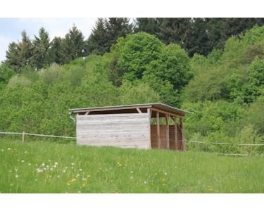 In Laufweite von ca. 250 Metern liegen die übrigen drei Weiden, zwei davon sind mit Holzzaun und Litze eingezäunt und verfügen über Unterstände mit Paddockplatten und Heuraufen. Die Gesamtgrundstücksfläche liegt bei ca. 5,5 Hektar, wozu auch ein kleiner Anteil Wald gehört.