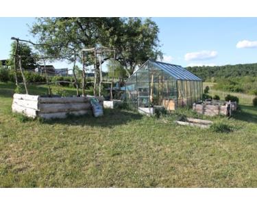 Von den Weiden aus gibt es Zugang zu zwei befestigten Paddocks mit Unterständen und Heuraufen. Der Untergrund unter den Paddocks wurde geschottert, darauf wurden Paddockplatten verlegt und diese mit Sand verfüllt. Ein Paddock hat ca. 125 qm, der andere Paddock ca. 100 qm. Zwischen Reitplatz und Paddocks/Weiden liegt unser Waldgarten, in dem diverse Obstbäume gepflanzt sind (u.a. ein alter Apfelbaum, ein alter Birnbaum, Mispeln, Kirschen, Pflaumen, Esskastanien u.v.m) und sich unser Glasgewächshaus sowie Hochbeete für den Gemüseanbau befinden. Im Waldgarten wohnen auch unsere Hühner in einem 9 qm großen Hühnerhaus mit großem Auslauf sowie unsere Kaninchen in einem großen Gehege.