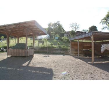 Vom Stall aus gelangt man auf das angrenzende, 1,5 ha große Weideland, das in vier Weiden unterteilt ist. Hinter der Scheune befindet sich ein 15x15 m Reitplatz, der mit Weidepanelen eingegrenzt ist.