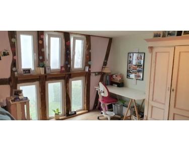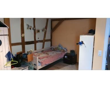 Das Wohnhaus (Fachwerkhaus), Baujahr 1893, wurde seit 2013 liebevoll und umfassend saniert und wird möbliert verkauft. Angrenzend an das Wohnhaus befinden sich auf der einen Seite ein großer (Lauf-)Stall mit Zugang zur Weide und auf der anderen Seite eine große Scheune mit einer Lagerkapazität für ca. 50 Heuballen, den Traktor, Gabelstapler, einen Anhänger und vieles mehr.