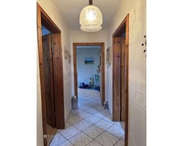 Geradeaus führt der Weg in das Esszimmer, das den Mittelpunkt des Hauses bildet. Von hier aus gelangen Sie sowohl in die gemütliche Küche mit Ausgang zur Terrasse, als auch in einen weiteren Flur, der zum Badezimmer und einer praktischen Abstellkammer führt.