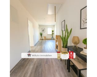 Die Wohnung betreten Sie über den weitläufigen Flur, der ebenfalls als Essbereich genutzt werden kann. Das helle und einladende Wohnzimmer bietet viel Platz für gemütliche Abende mit Familie und Freunden. Die Fenster lassen viel Tageslicht herein und schaffen eine angenehme Atmosphäre.