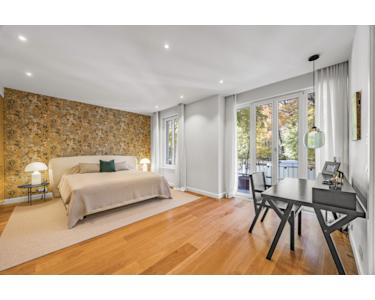 - Schlafzimmer mit Balkonzugang, Bad en suite (Regenschauer-Dusche, Wanne, separates WC, Einbauschränke, Audiosystem)