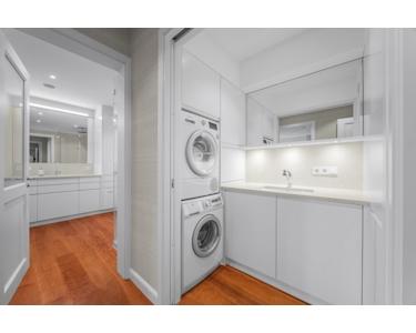 - Waschtheke mit Waschmaschine und Trockner und Schiebetür