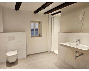 Das neue Bad, die energieeffiziente Wärmepumpe und der Glasfaser-Internetanschluss bringen zeitgemäßen Wohnkomfort in alte Bausubstanz.