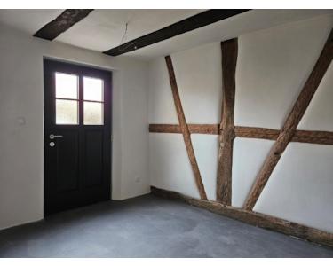 Doppelverglaste Sprossenfenster (Denkmalschutz), Lehmwände und sichtbares Fachwerk an Decken und Wänden verleihen ihr einen ganz besonderen Charme.