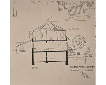 Baumeister/Maurermeister Zweifamilienhaus - 1966 ursprünglich im Stil eines Winkelbungalows mit flachem Satteldach und Teilunterkellerung erbaut. 1992 Aufstockung nebst Umwidmung in 2 separate Wohneinheiten (2 Grundbuchblätter, je 50 % Grundstücksanteil). Das Gebäude verfügt über eine Ölheizung mit moderner Brennwerttechnik in Kombination mit einem Festbrennstoffkessel und einer Solarthermie Anlage.