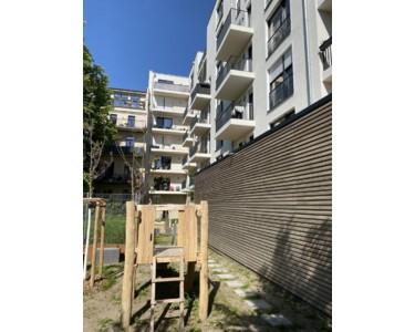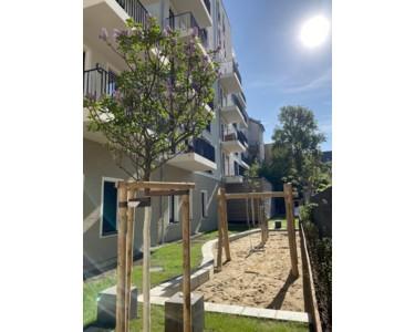 - Green inner courtyard with a small play area for children