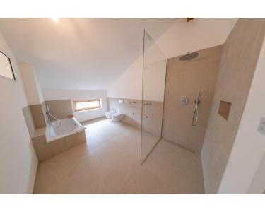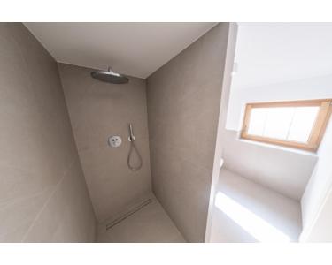 - Großformatige 120 x 120 cm Fliesen in Bädern und Nassräumen, mit großflächigen, 2700