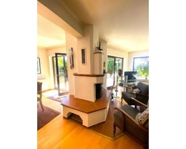 Die massiv gebaute Doppelhaushälfte gefällt nicht nur durch ihre Lage, sondern auch durch den Einzelhauscharakter und die großzügige Aufteilung. Die beiden Doppelhaushälften sind versetzt aneinandergebaut und deshalb extrem ruhig. Die Terrassen liegen nicht nebeneinander, so dass man auch im Garten völlig ungestört ist. Die individuelle Gestaltung lässt vergessen, dass es sich hier um eine Doppelhaushälfte handelt.