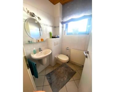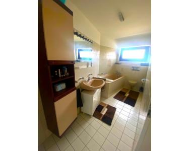 Über das Treppenhaus gelangt man in den 1. Stock. Dort befinden sich das Elternschlafzimmer und zwei weitere Zimmer sowie ein Dusch- und ein Wannenbad. Das Wannenbad ist exklusiv über das Elternschlafzimmer zugänglich. Der Balkon in einem der beiden weiteren Zimmer bietet eine unverbaute Sicht bis nach Rheinbach.