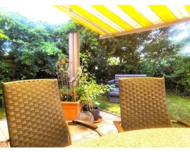Der Garten mit der großen, nach Südwesten ausgerichteten Terrasse ist durch entsprechende Bepflanzung nicht einsehbar.