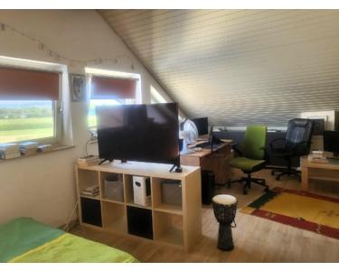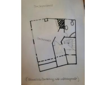 Das ebenfalls über das gesonderte Treppenhaus erreichbare Dachgeschoss setzt sich aus einem großen Zimmer mit Dachschrägen und Küchenanschluss sowie einem Duschbad zusammen. In der Vergangenheit wurde dieses Geschoss auch als Einliegerwohnung untervermietet. Die Installation einer Küche ist jederzeit möglich. Alle Stockwerke sind über das Treppenhaus zugänglich.