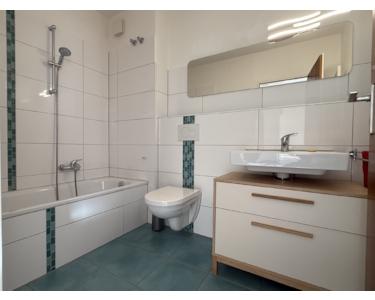Über einen modernen Flur, welcher Platz für eine kleine Garderobe bietet, gelangen Sie in alle Räume. Zur Linken befindet sich das um 2013 sanierte, innenliegende Wannenbad. Vor Kopf erreichen Sie das helle Schlafzimmer, mit direktem Zugang zur süd-westlich ausgerichteten Loggia. Zur Rechten liegen ein praktischer Abstellraum sowie das Wohnzimmer mit offener Küche. Selbstverständlich bietet auch das Wohnzimmer einen direkten Zugang zur Loggia.