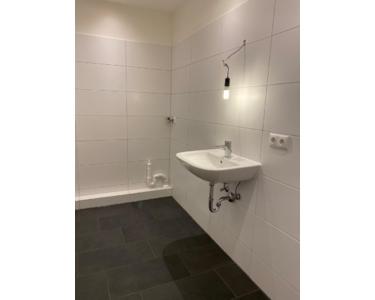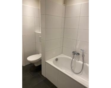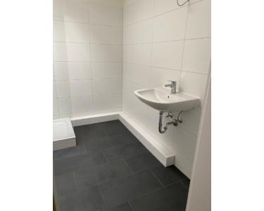 Die Bäder wurden mit hellen modernen Fliesen und Sanitärobjekten
