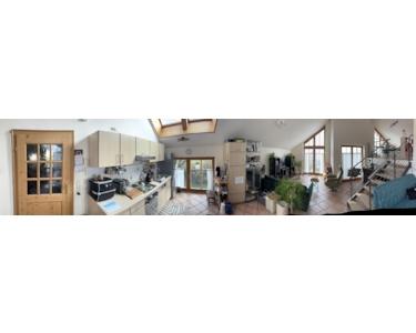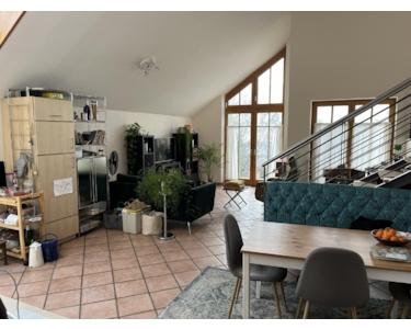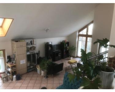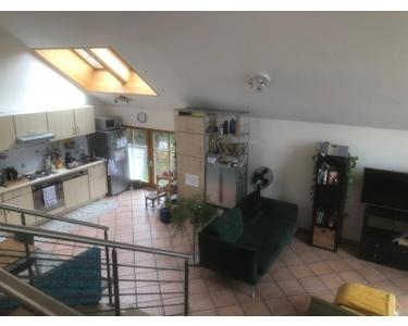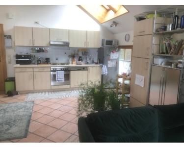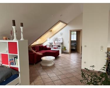 Wir vermieten eine wunderschöne, lichtdurchflutete Dachgeschosswohnung in moderner Split-Level-Bauweise. Sie überzeugt mit einer Einbauküche, einem eigenen Balkon (bei schönem Wetter Blick in die Alpen) und einem großzügigen Wohnbereich, der sich über zwei Ebenen erstreckt. Darüber hinaus gibt es ein Schlafzimmer mit ca. 13 m², eine Abstellkammer, in die auch eine Waschmaschine passt, sowie einen kleinen Dachboden.