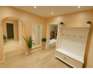 • Warmer Echtholz-Parkettboden, elegante Spanndecken mit LED-Beleuchtung