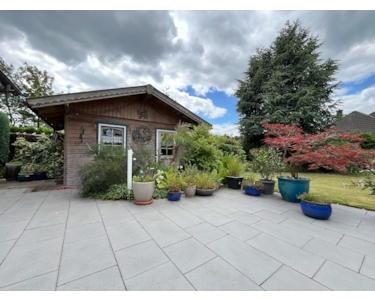 Dieser exklusive Winkelwalmdach-Bungalow, erbaut im Jahr 1996, bietet nicht nur eine einzigartige Architektur, sondern auch eine Fülle von modernen Annehmlichkeiten. Die Immobilie befindet sich in einer ruhigen Sackgasse in Walchum und bietet Ihnen höchste Privatsphäre auf einem großzügigen Grundstück von 807 m², das komplett eingezäunt ist.