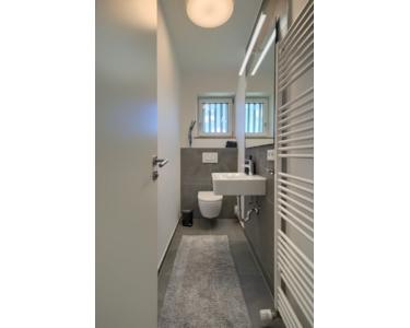Komfort-Bad: Das moderne Badezimmer ist ein echtes Schmuckstück und verfügt über eine schicke Walk-In-Dusche. Zusätzlich gibt es eine separates WC.